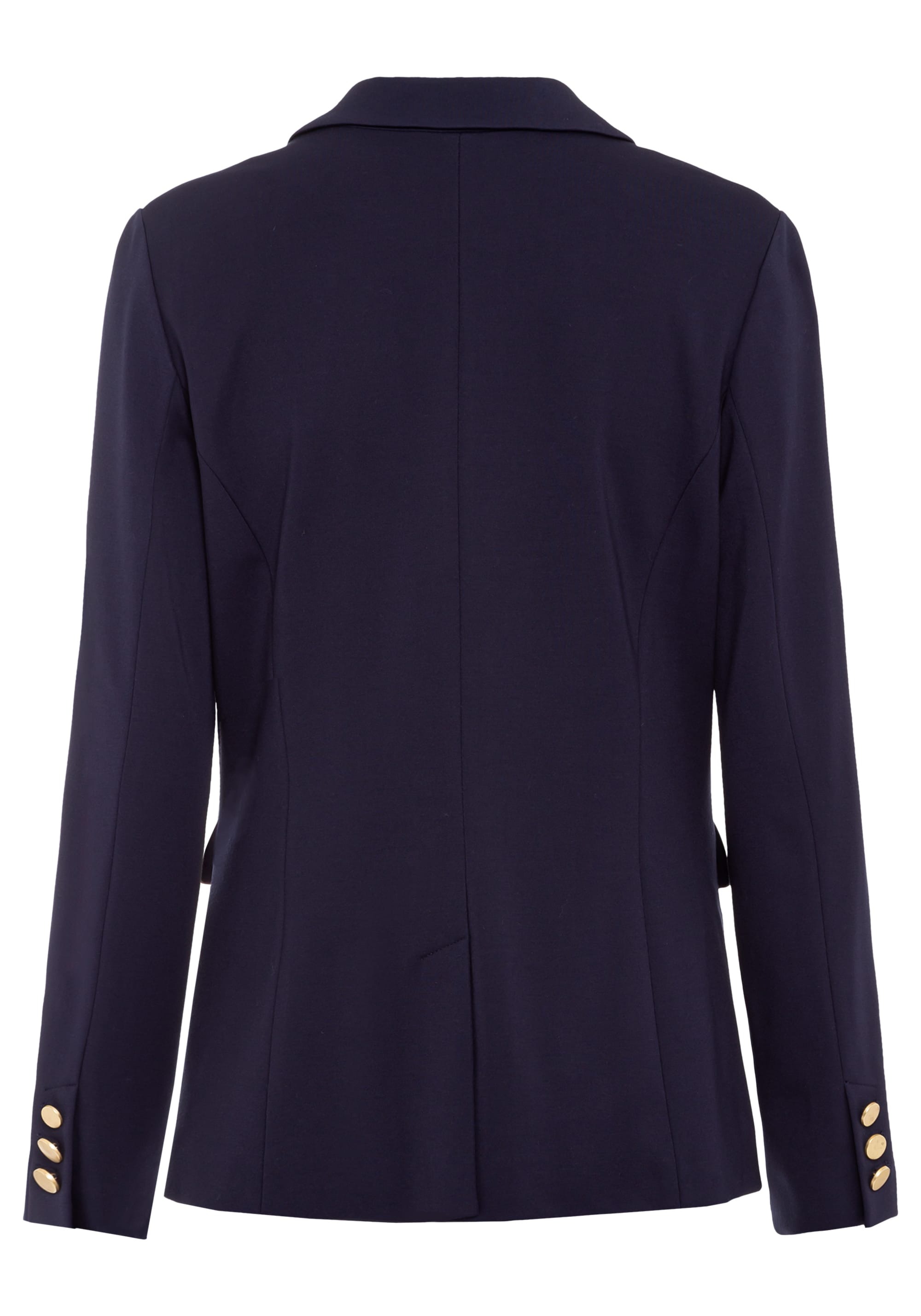 Пиджак с достаточной степенью эластичности, обеспечивающей комфорт на протяжении всего дня! Однобортный жакет с воротником-стойкой, двумя передними карманами, индивидуальными швами для придания формы и красивыми пуговицами матового золотого цвета.