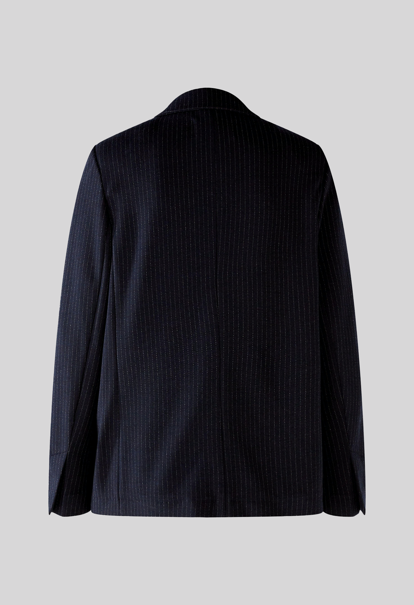 Блейзер из плотного трикотажа. Прямой крой, стандартная длина. Однобортный с воротником с лацканами. Без подкладки. С карманом на клапане и подплечниками. Длина для размера 42 - 69 см.