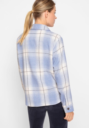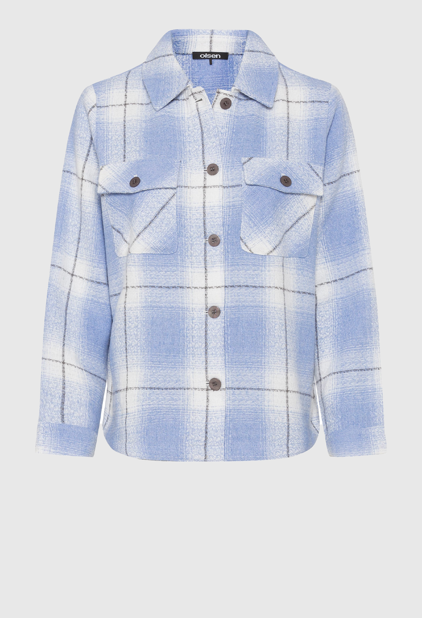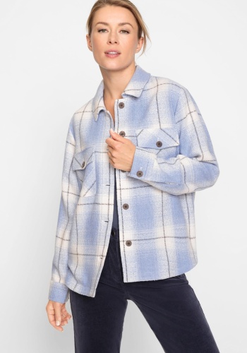 Жакет имеет воротник, застежку на пуговицы спереди и два кармана с клапанами на груди. Изготовленн из высококачественного полиэстера и натуральной шерсти, что обеспечивает комфорт и тепло.