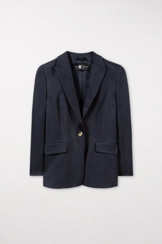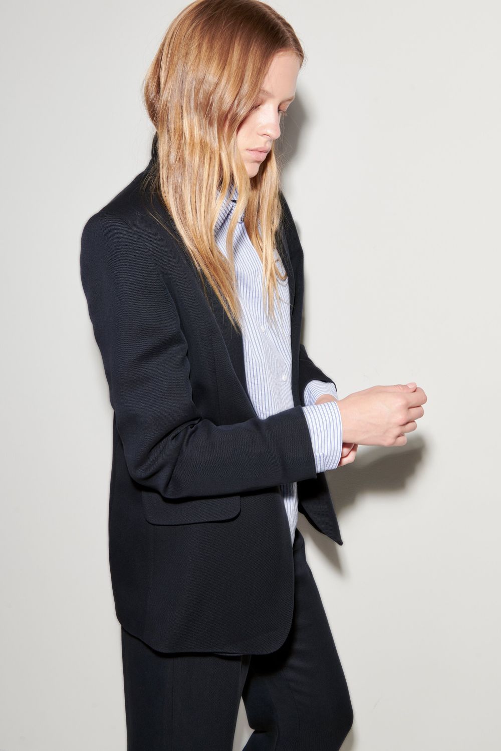 Стильный пиджак классического дизайна с воротником на пуговицах, лацканами и карманами с клапанами. Мягкая ткань габардин подчеркивает повседневный силуэт.