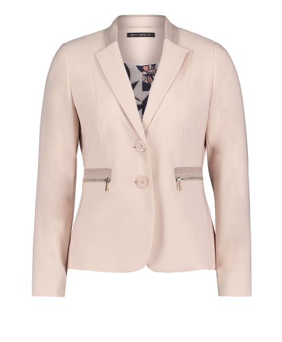 Классический жакет - абсолютно необходимый элемент женского гардероба! Слегка приталенный крой подчеркивает достоинства фигуры. Лацканы, застежка на пуговицах, длинные рукава. Отделка блестящей тесьмой придает образу нотку гламура. Этот жакет будет изюминкой как делового, так и кэжуал образа.